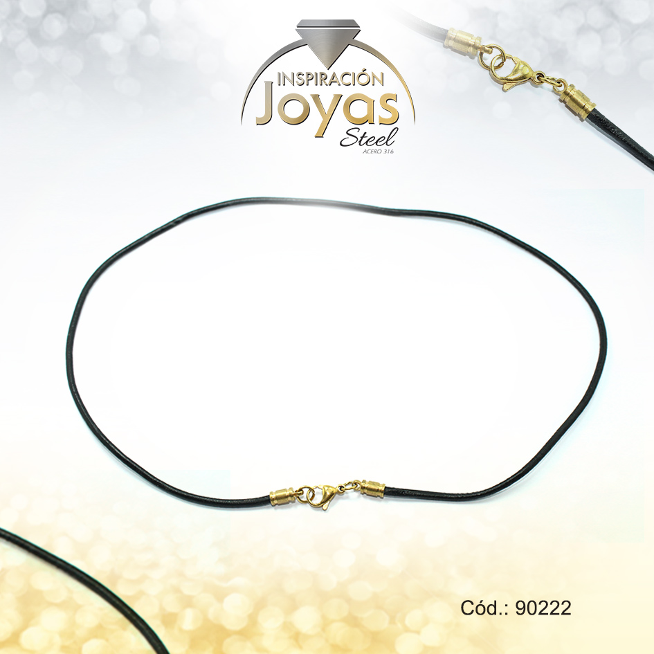 Cadena de Acero Collar Dorado Cuero Negro – 90222