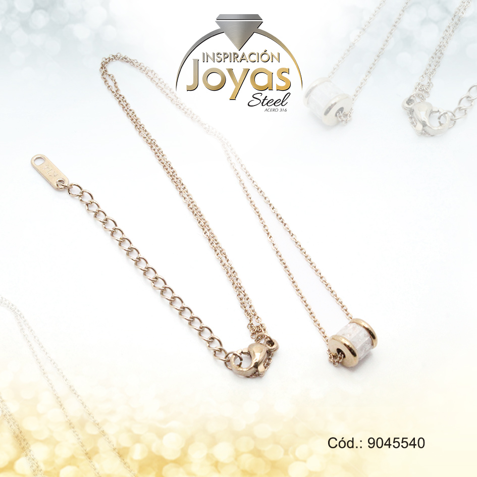 Cadena de Acero Dorado Con Dije Cilindro Esmaltado Esmalte Blanco Medida 40 cm – 9045440