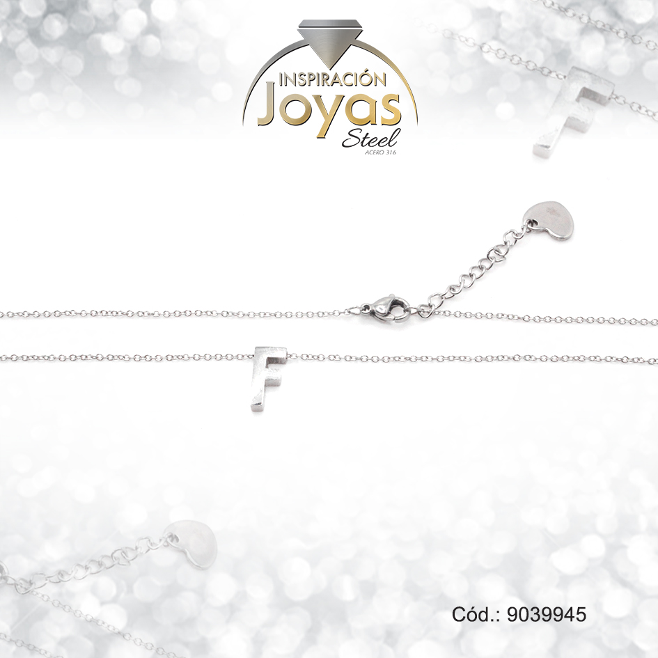Cadena de Acero Plateado Con Dije Letra F Medida 45 cm – 9039945