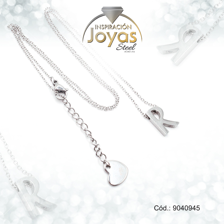 Cadena de Acero Plateado Con Dije Letra R Medida 45 cm – 9040945