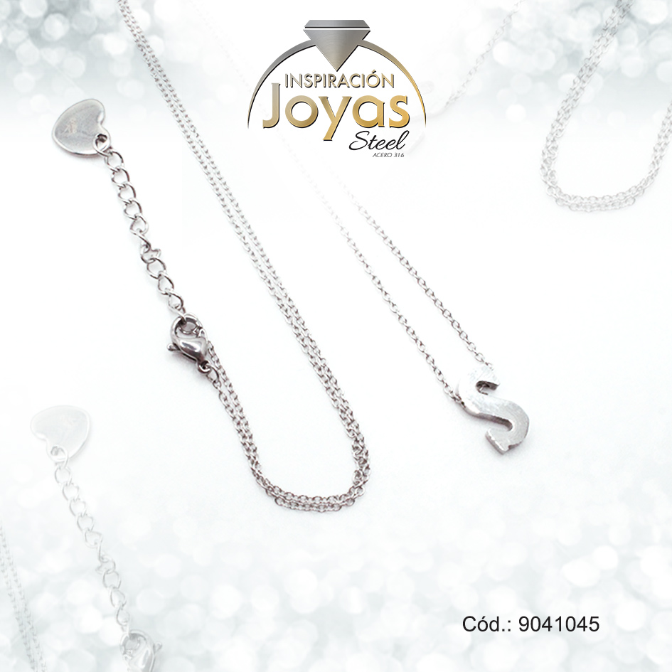 Cadena de Acero Plateado Con Dije Letra S Medida 45 cm – 9041045