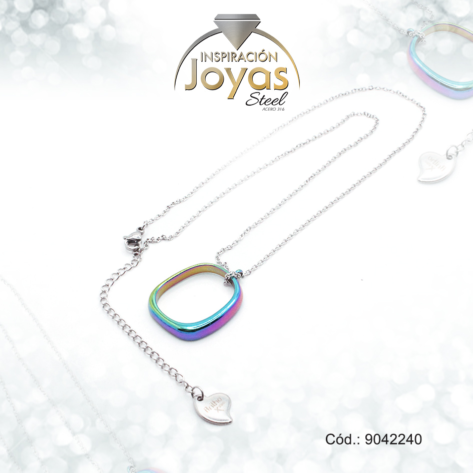 Cadena de Acero Plateado Con Dije Óvalo de Arcoiris efecto Luminoso Esmalte Medida 40 cm – 9042240