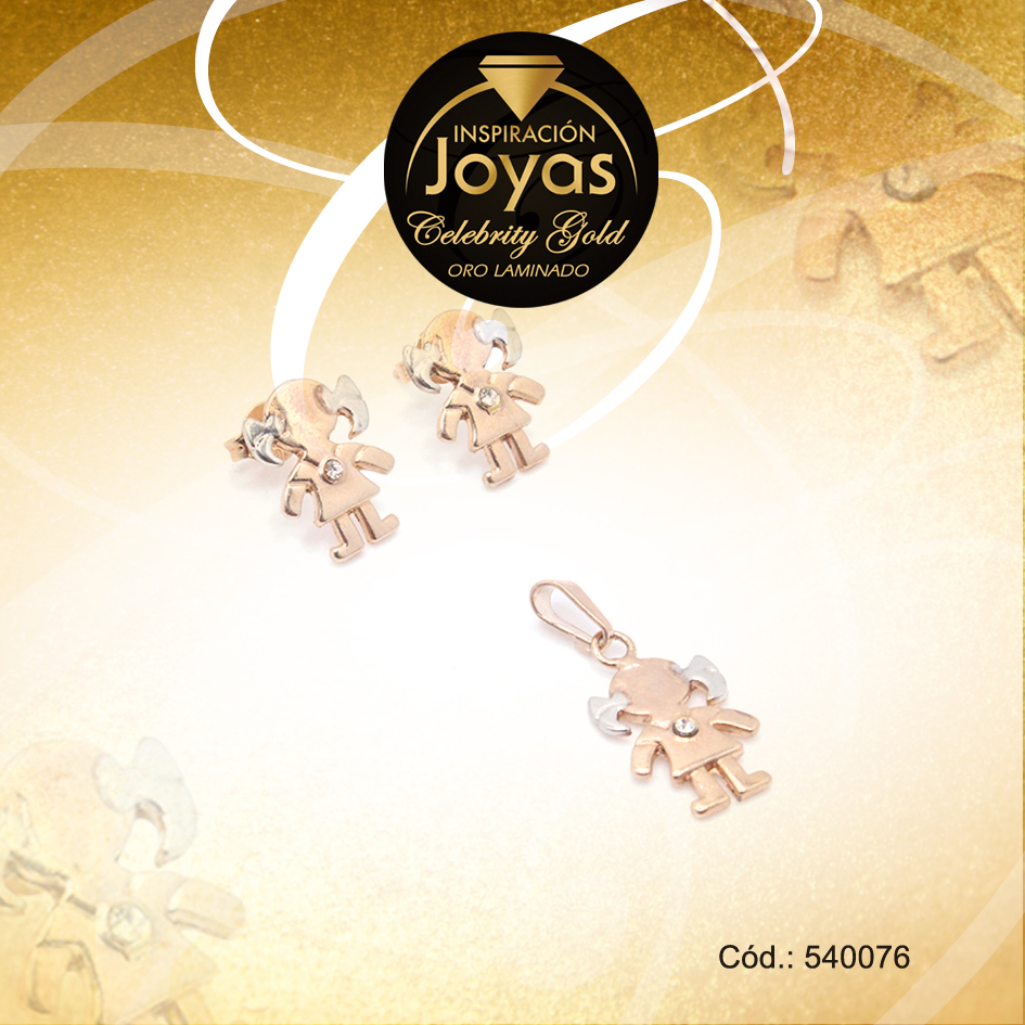 Conjunto Celebrity Gold Dama Zarcillo + Dije 2 Tonos Niña – 540076