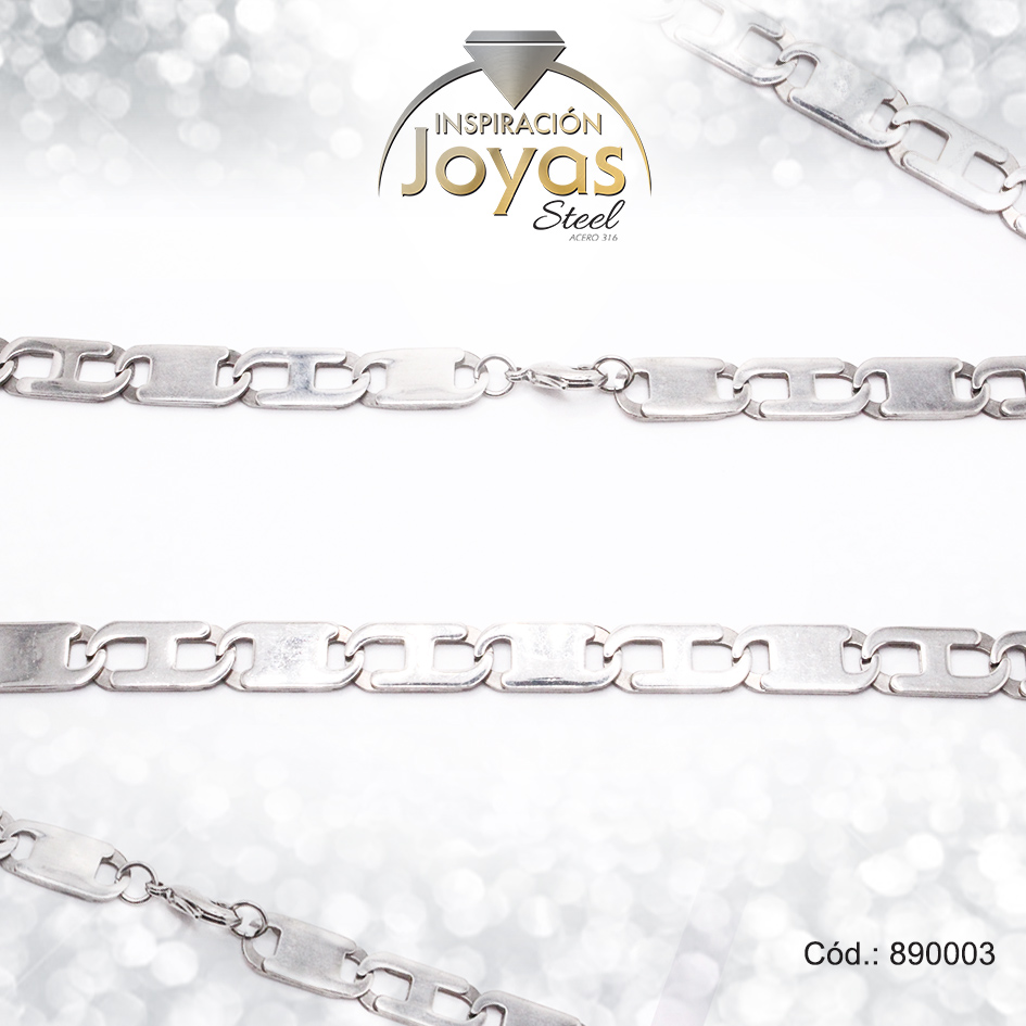 Conjunto de Acero Caballero Pulsera + Cadena Plateado – 890003