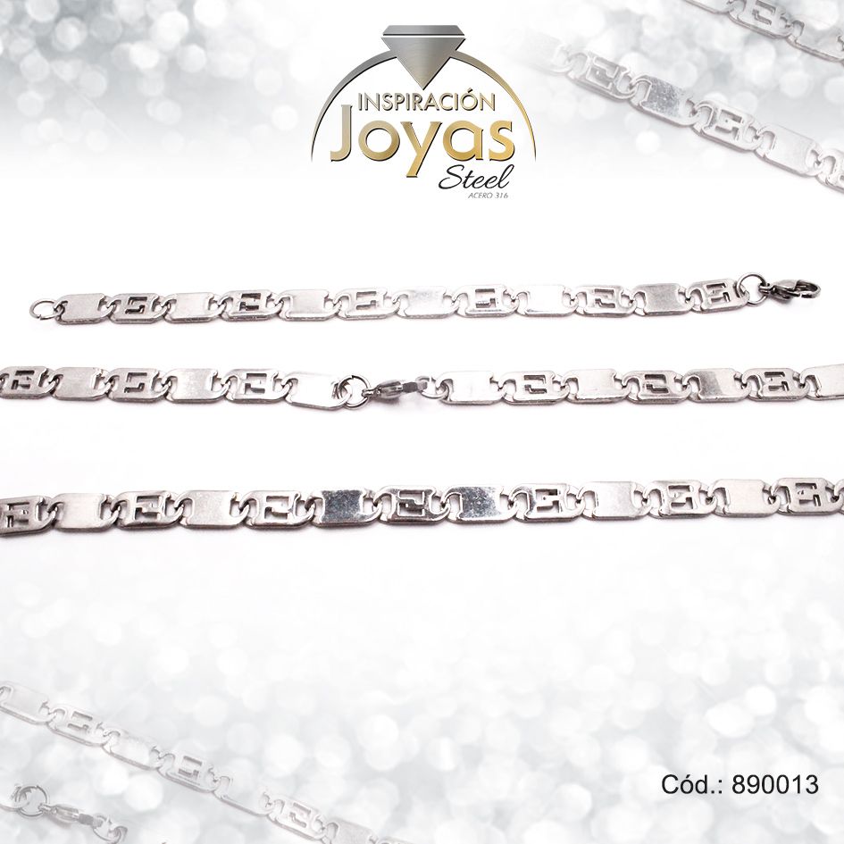 Conjunto de Acero Caballero Pulsera + Cadena Plateado – 890013