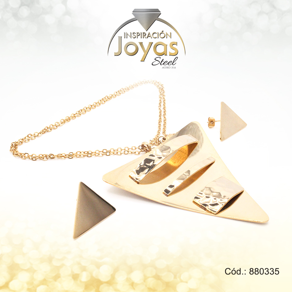 Conjunto de Acero Dama Cadena + Dije + Zarcillo Triangulo Dorado – 880335