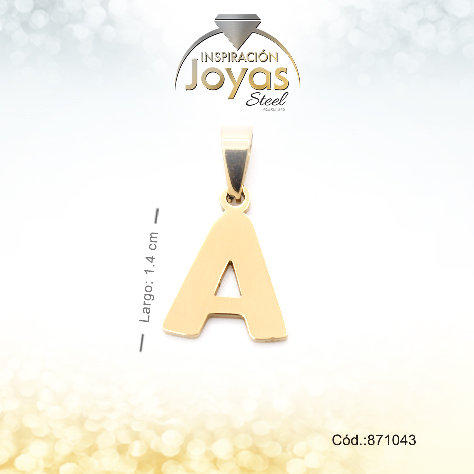 Dije – Acero – Letra A – Mediana – Dorado – Liso D: 1,4Cm – 871043