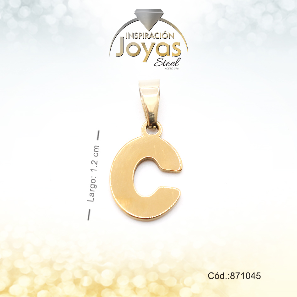 Dije – Acero – Letra C – Mediana – Dorado – Liso D: 1,2Cm – 871045