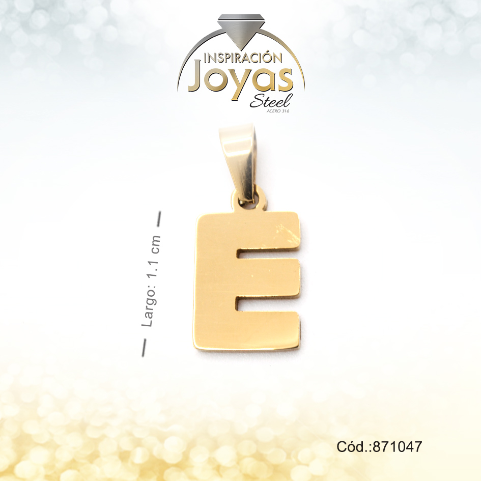 Dije – Acero – Letra E – Mediana – Dorado – Liso D: 1,1Cm – 871047