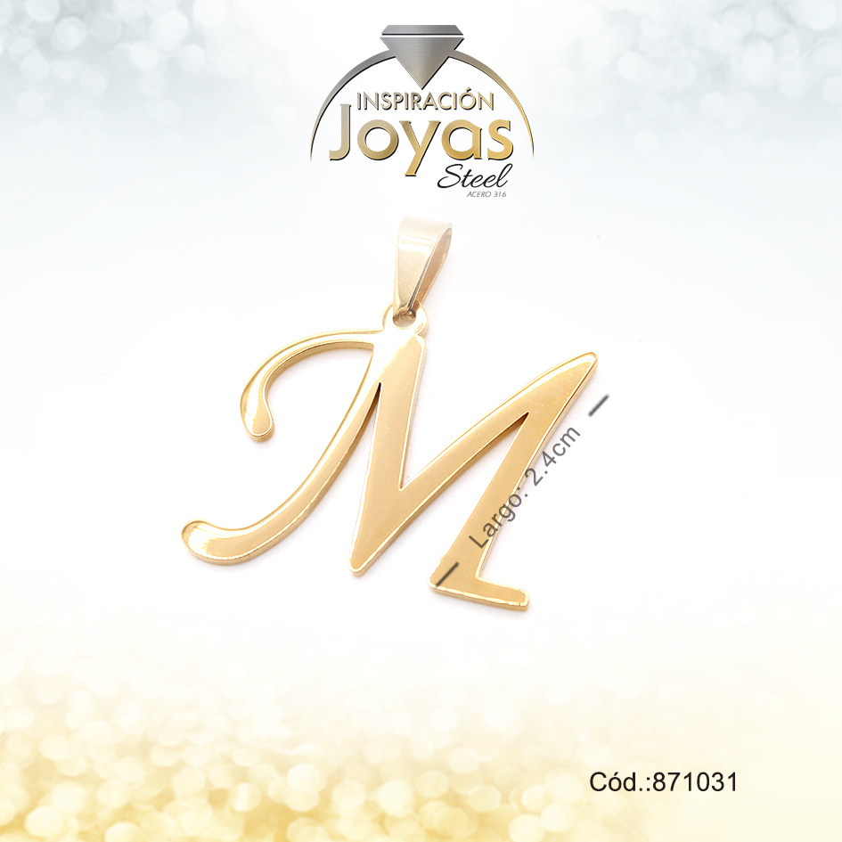 Dije – Acero – Letra M – Grande – Dorado – Liso D: 2,7Cm – 871031