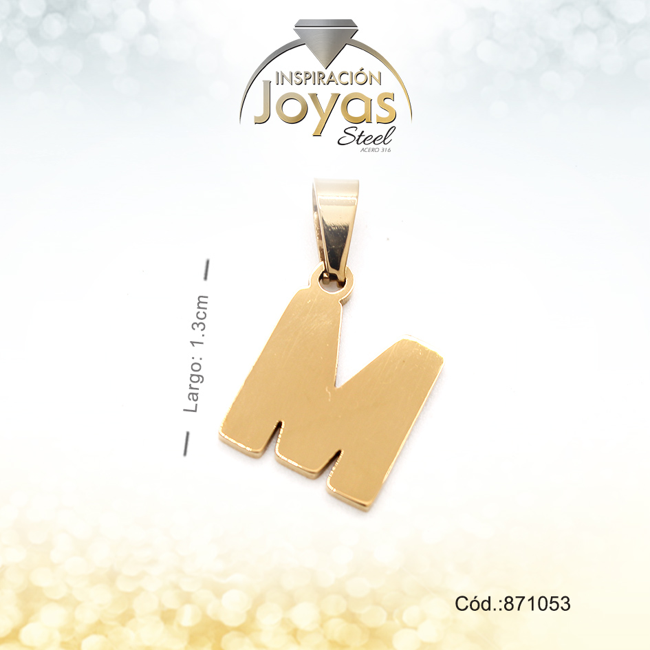 Dije – Acero – Letra M – Mediana – Dorado – Liso D: 1,3Cm – 871053