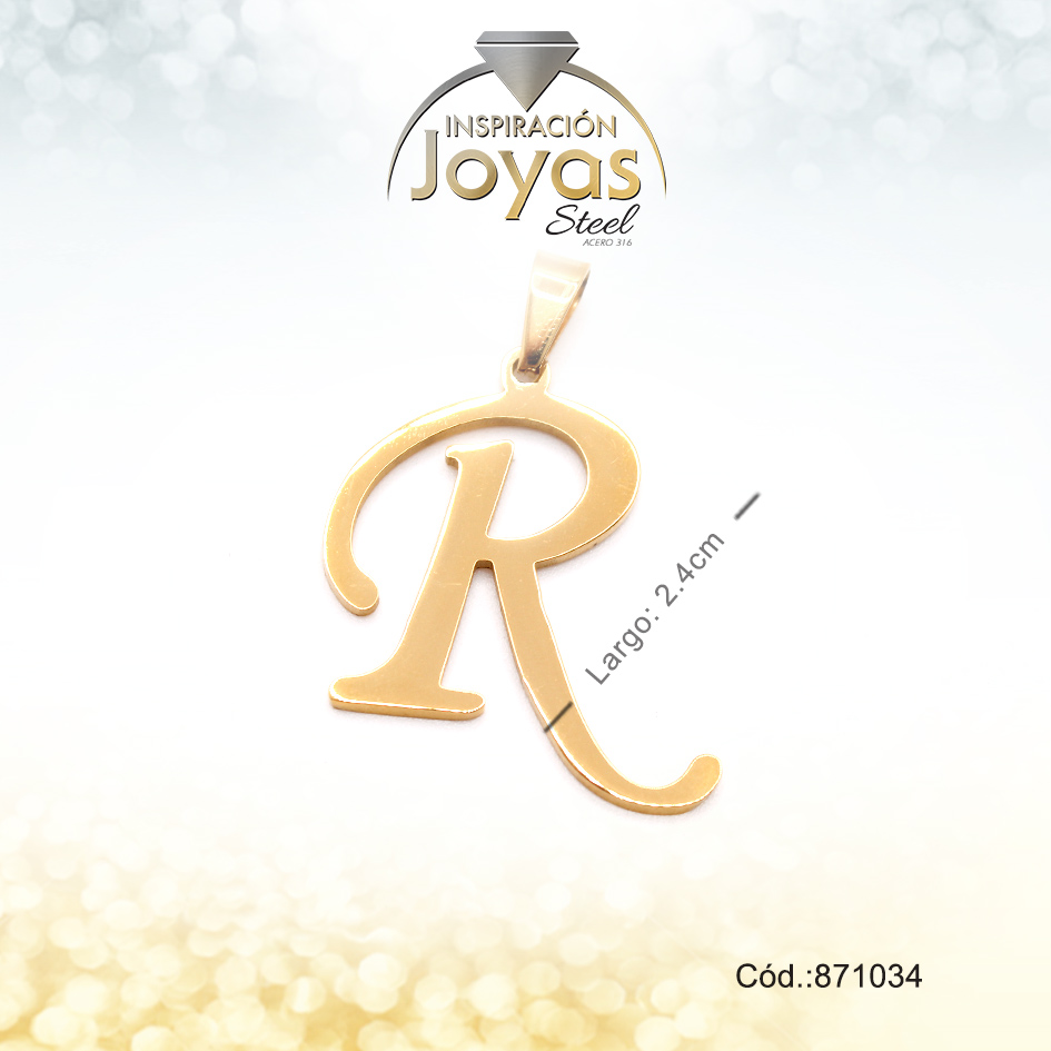 Dije – Acero – Letra R – Grande – Dorado – Liso D: 2,5Cm – 871034