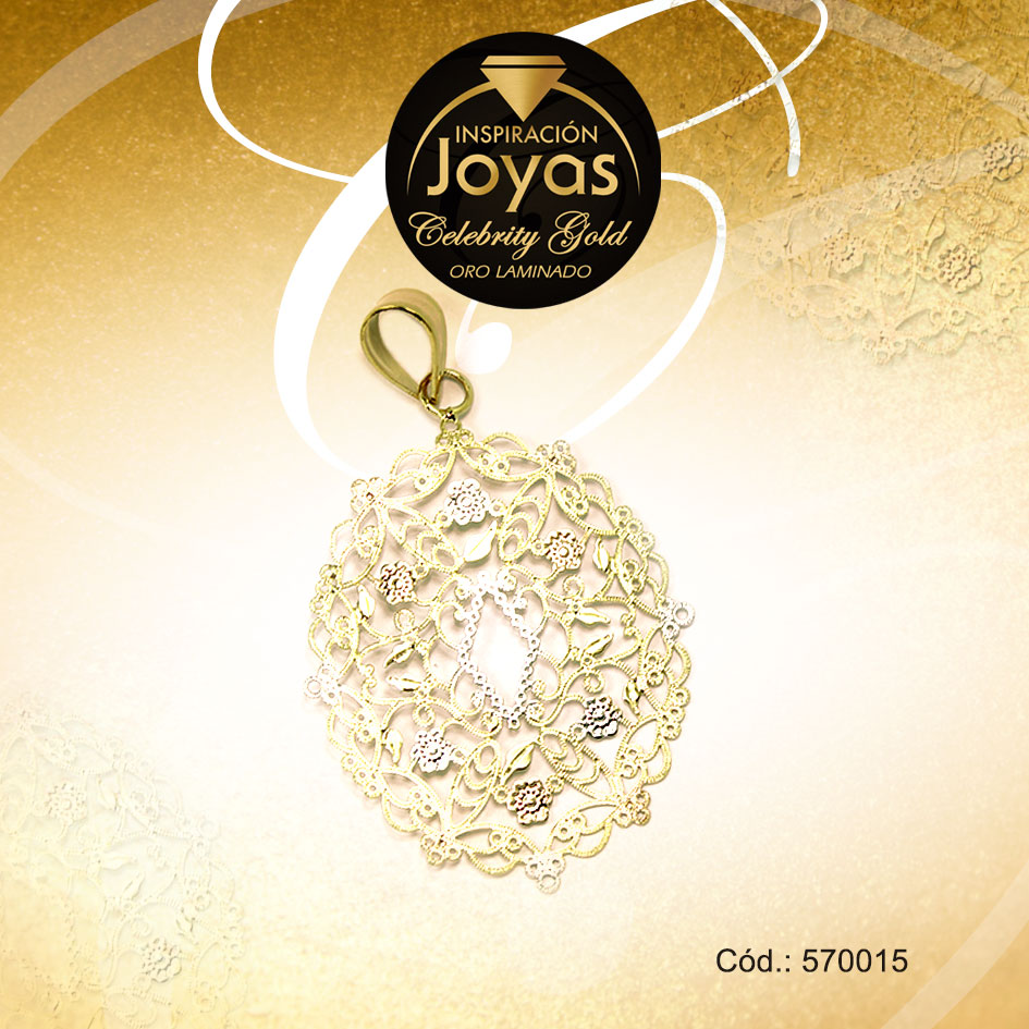 Dije Celebrity Gold Tono 3 Tonos Variado Trancadero: 0 A: 3,5 cm L: 5,5 cm Flores Filigrama – 570015