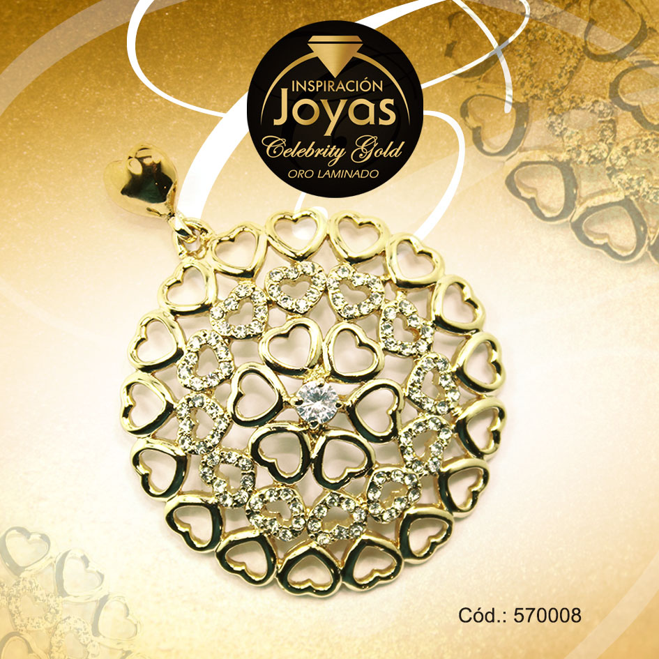 Dije Celebrity Gold Tono Dorado Aleación Micro Circón Trancadero: 0 A: 4 cm L: 5 cm Círculo con Corazón – 570008
