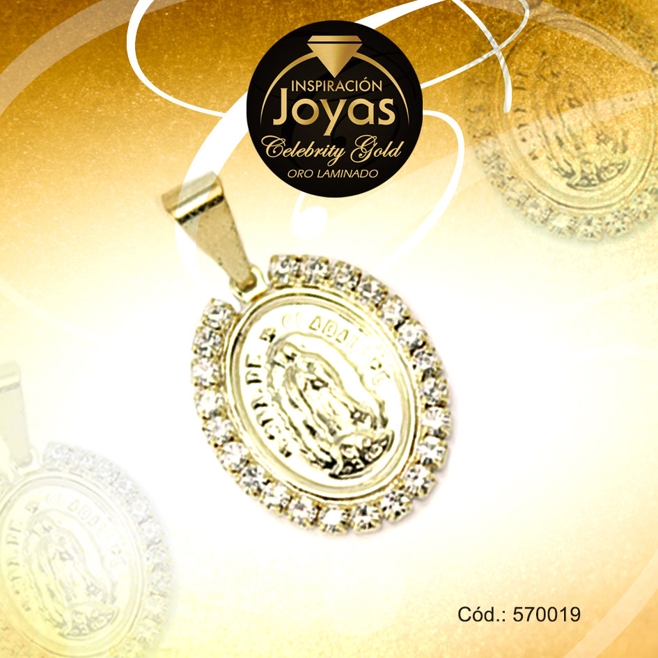 Dije Celebrity Gold Tono Dorado Religioso Micro Circón Trancadero: 0 A: 1,5 cm L: 3 cm Virgen de Guadalupe – 570019