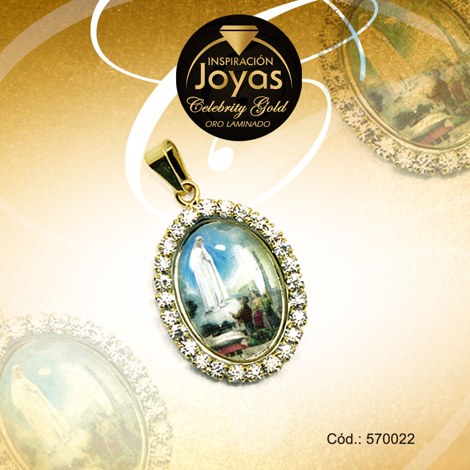 Dije Celebrity Gold Tono Dorado Religioso Micro Circón Trancadero: 0 A: 2 cm L: 3 cm Virgen de Fatima – 570022