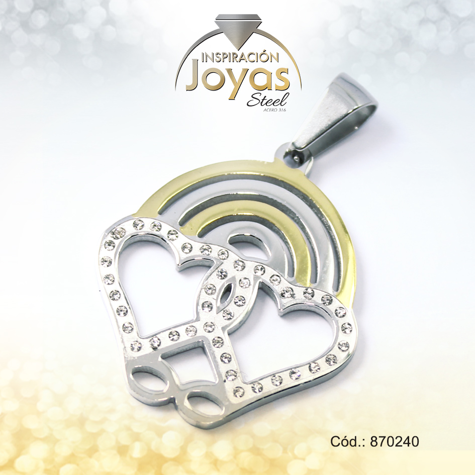 Dije de Acero Aleación Circón 2 Tonos Corazón – 870240
