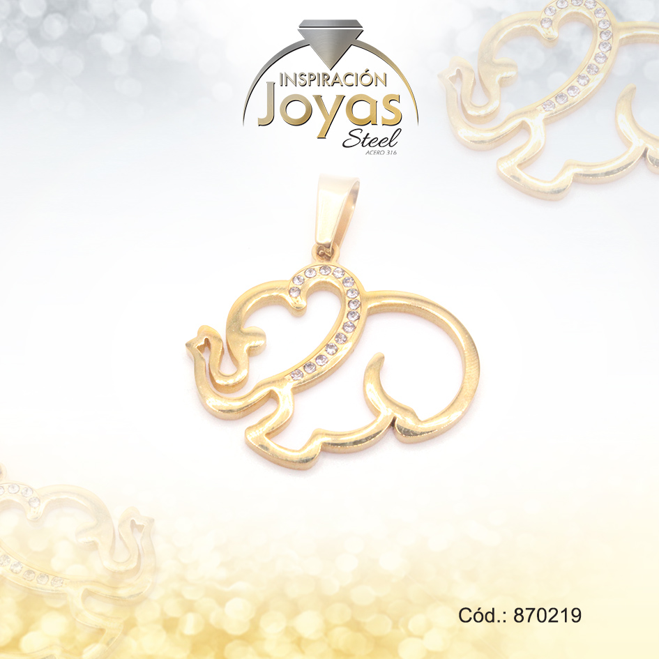 Dije de Acero Aleación Circón Dorado Elefante – 870219