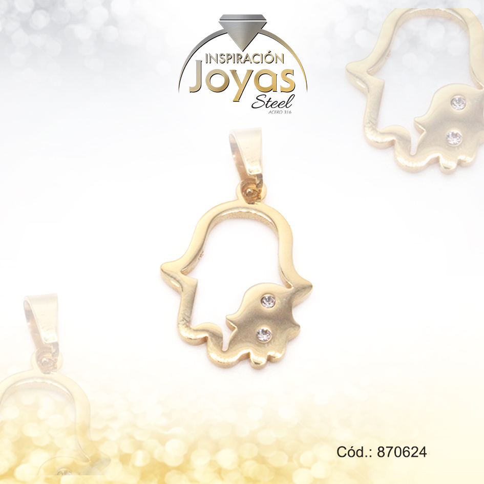 Dije de Acero Aleación Circón Dorado Mano de Fátima – 870624