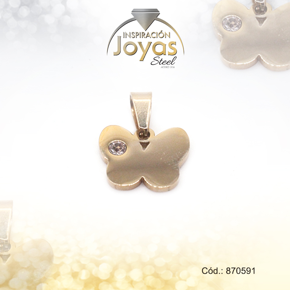 Dije de Acero Aleación Circón Dorado Mariposa – 870591