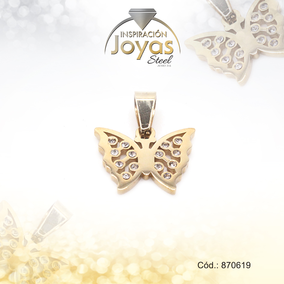 Dije de Acero Aleación Circón Dorado Mariposa – 870619