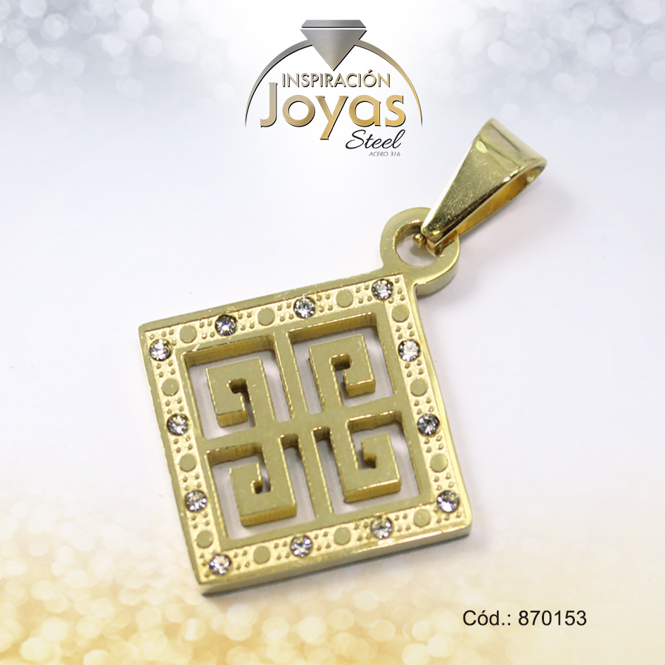 Dije de Acero Aleación Circón Dorado Rombo – 870153