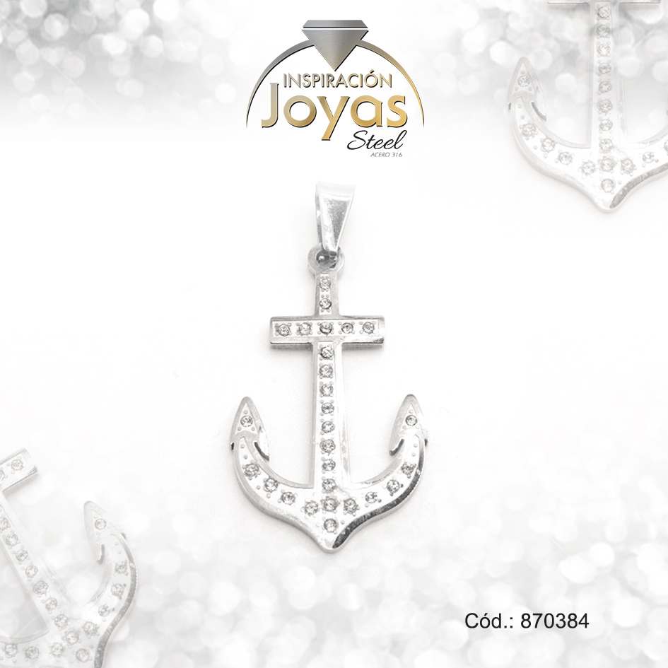 Dije de Acero Aleación Circón Plateado Ancla – 870384