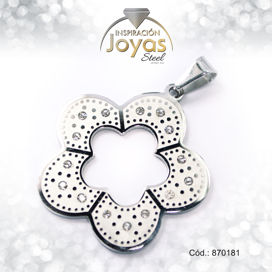 Dije de Acero Aleación Circón Plateado Flor – 870181