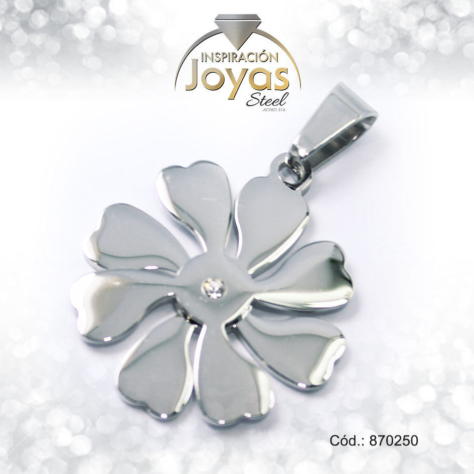 Dije de Acero Aleación Circón Plateado Flor – 870250