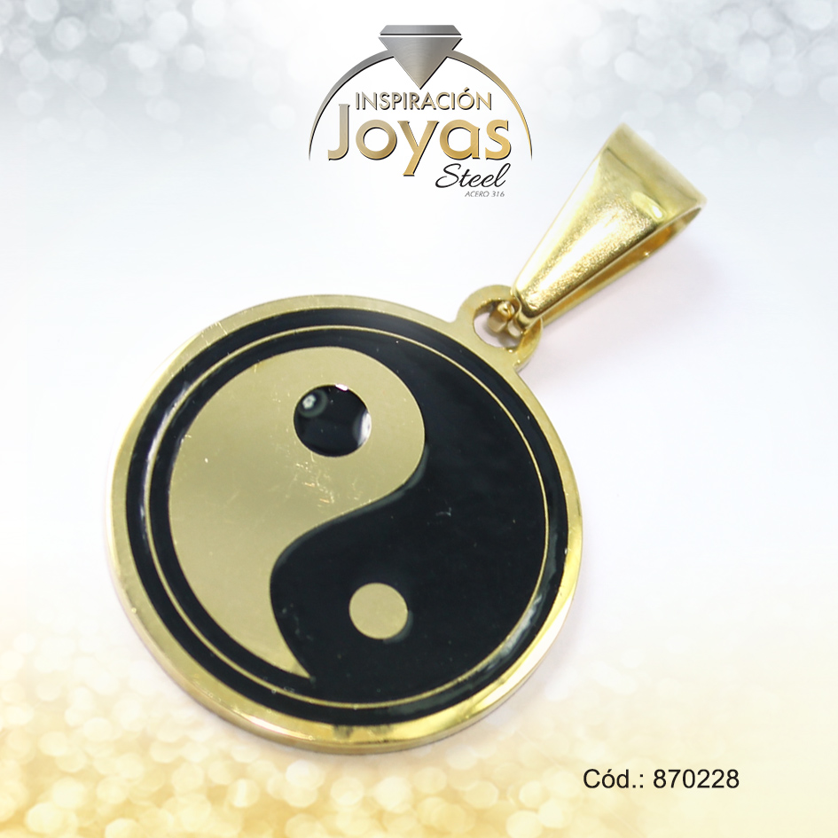 Dije de Acero Aleación Esmalte Dorado Blanco y Negro Ying y Yang – 870228