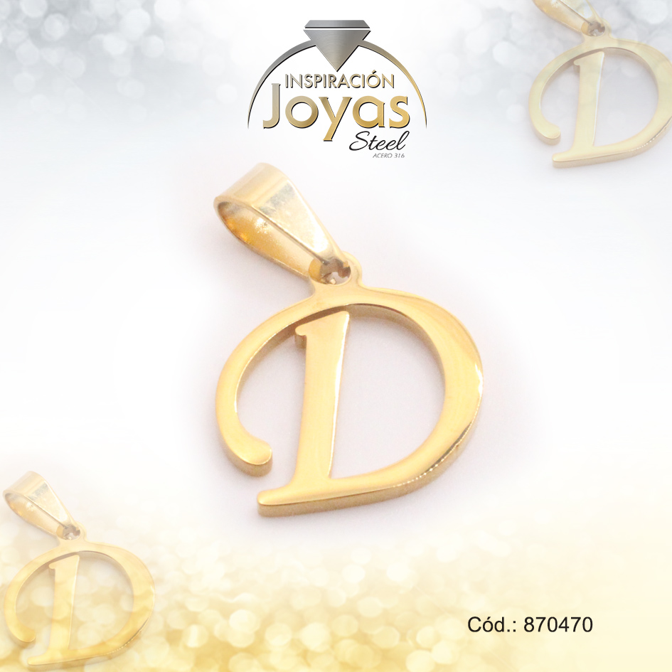 Dije de Acero Letra Dorado D – 870470
