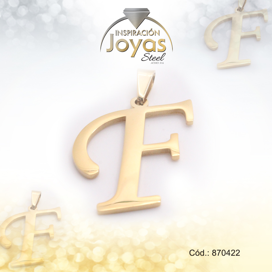 Dije de Acero Letra Dorado F – 870422