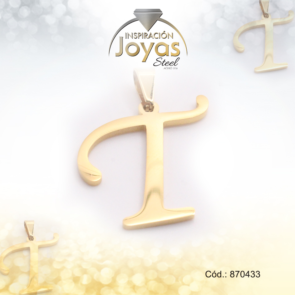 Dije de Acero Letra Dorado T – 870433