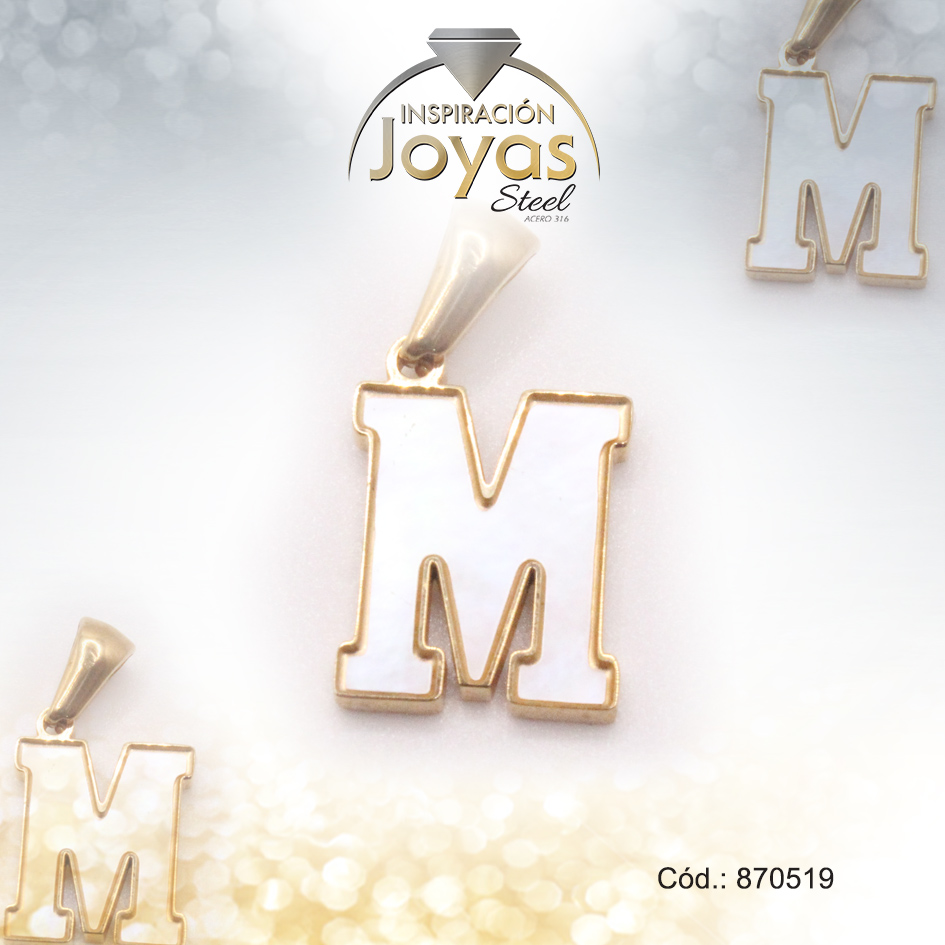 Dije de Acero Letra Nácar Dorado M – 870519