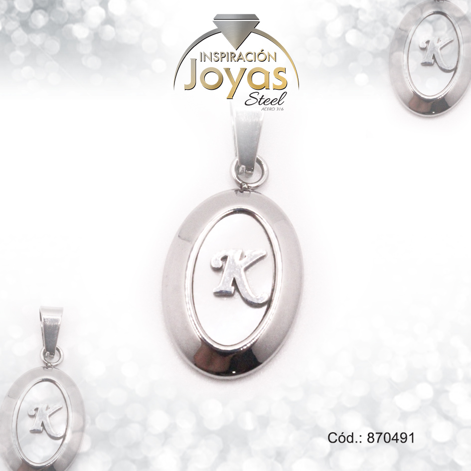 Dije de Acero Letra Nácar Plateado K – 870491