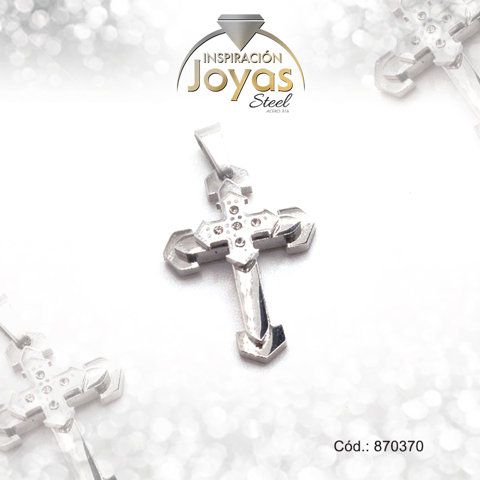 Dije de Acero Religioso Circón Plateado Cruz – 870370