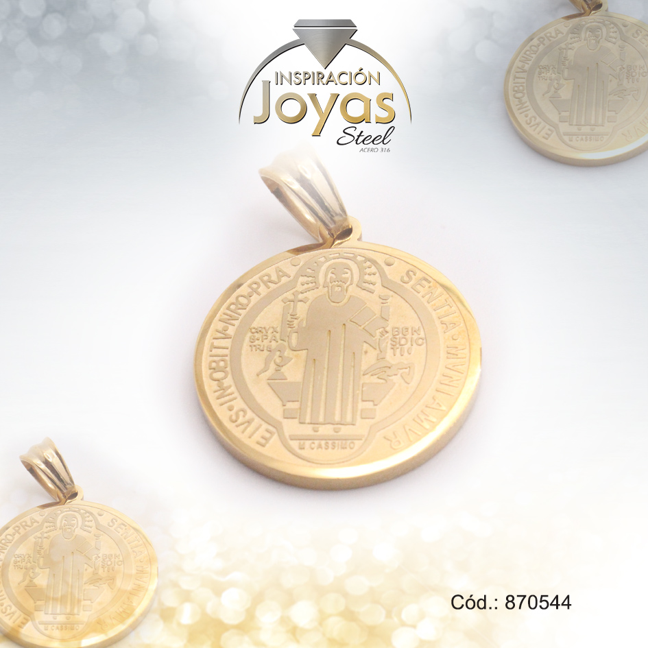 Dije de Acero Religioso Dorado San Benito – 870544
