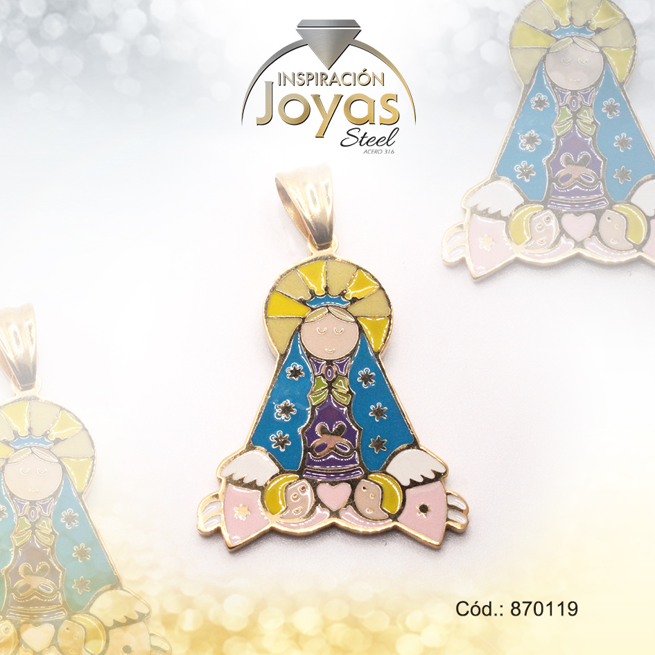 Dije de Acero Religioso Esmalte Dorado Multi Color Virgen de Fátima – 870119