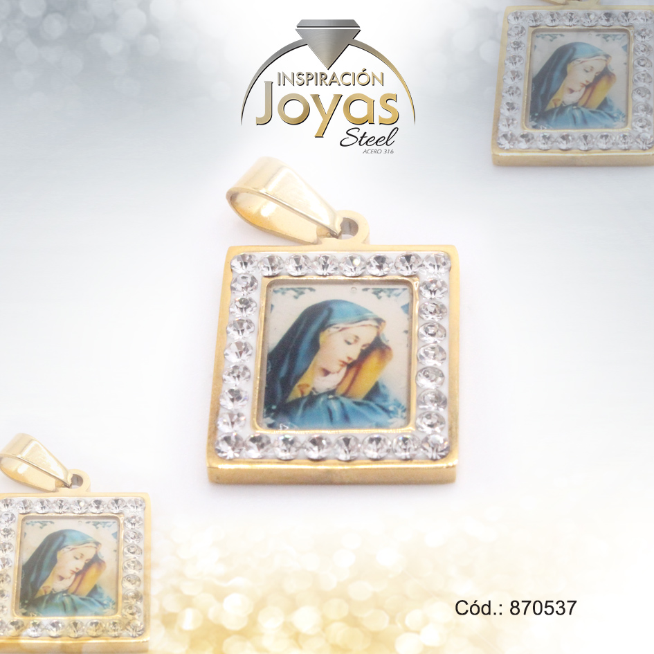 Dije de Acero Religioso Esmalte Dorado Multi Color Virgen – 870537