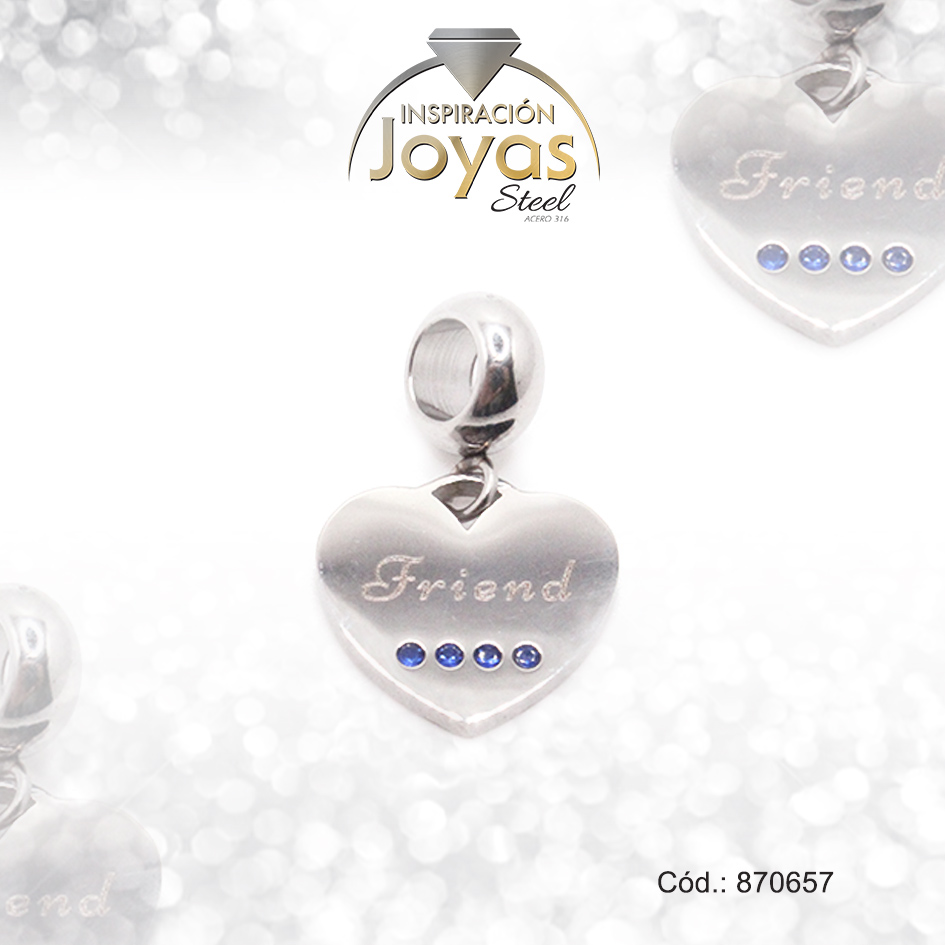 Dije de Acero Variado Circón Pandora Plateado Azul Corazón – 870657