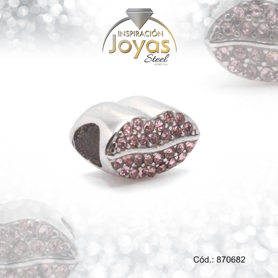 Dije de Acero Variado Circón Pandora Plateado Rosado Labios – 870682