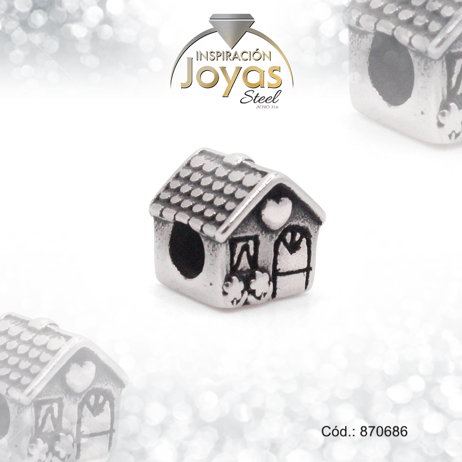 Dije de Acero Variado Esmalte Pandora Plateado Negro Casa – 870686