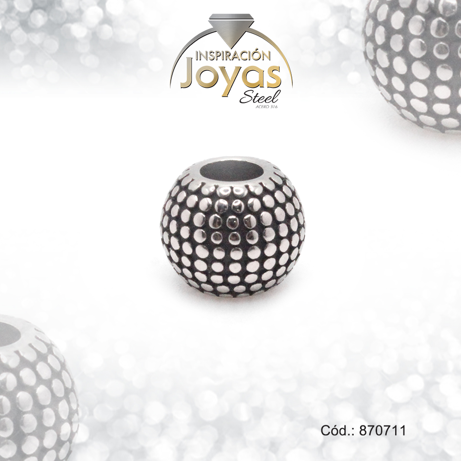 Dije de Acero Variado Esmalte Pandora Plateado Negro Esfera – 870711