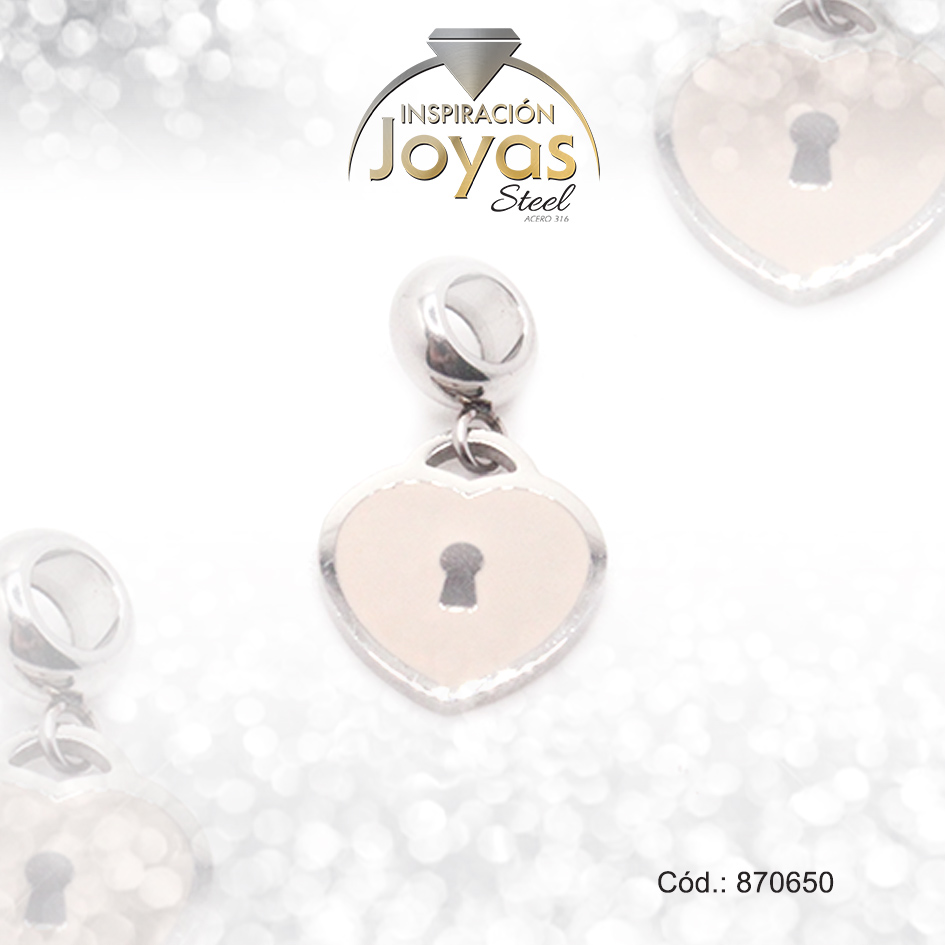 Dije de Acero Variado Esmalte Pandora Plateado Rosado Corazón – 870650