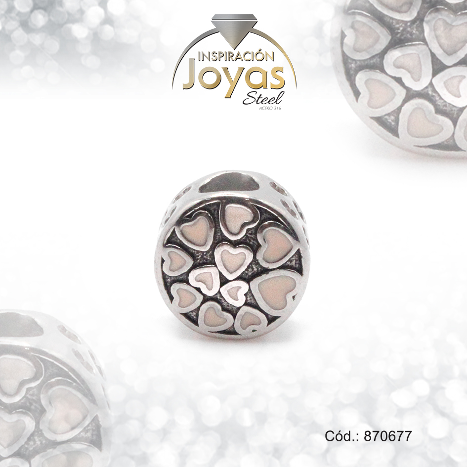 Dije de Acero Variado Esmalte Pandora Plateado Rosado Corazón – 870677