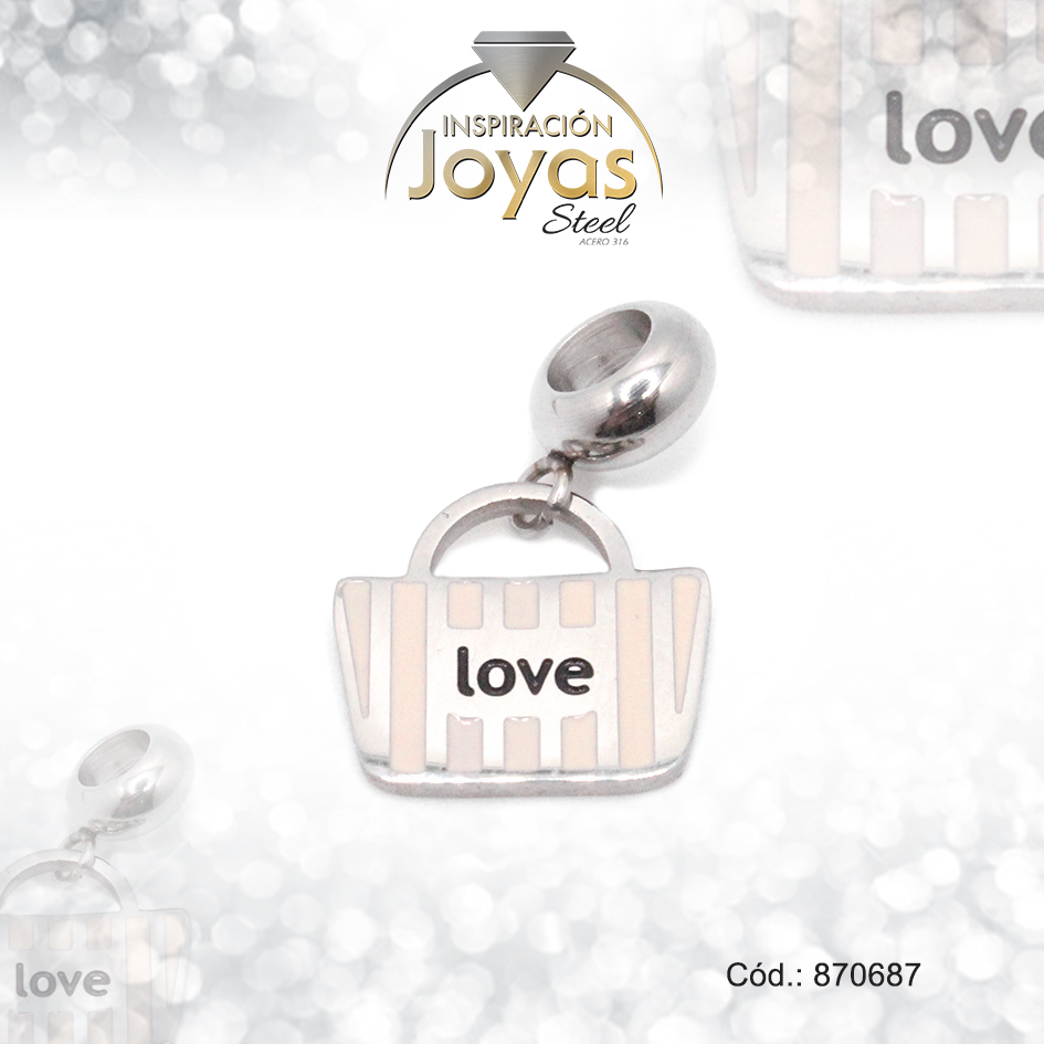 Dije de Acero Variado Esmalte Pandora Plateado Rosado Love – 870687