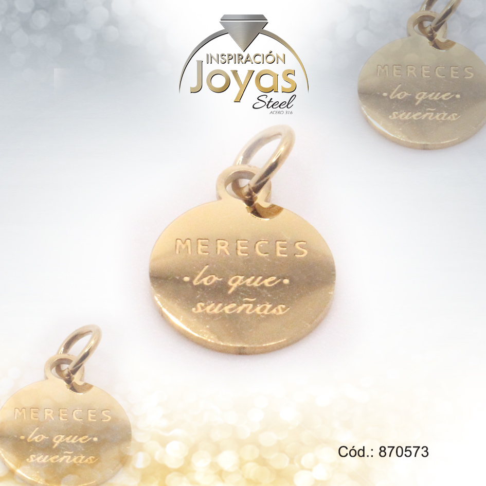 Dije de Acero Variado Motivacional Dorado Círculo – 870573