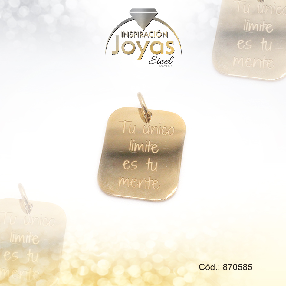 Dije de Acero Variado Motivacional Dorado Cuadrado – 870585