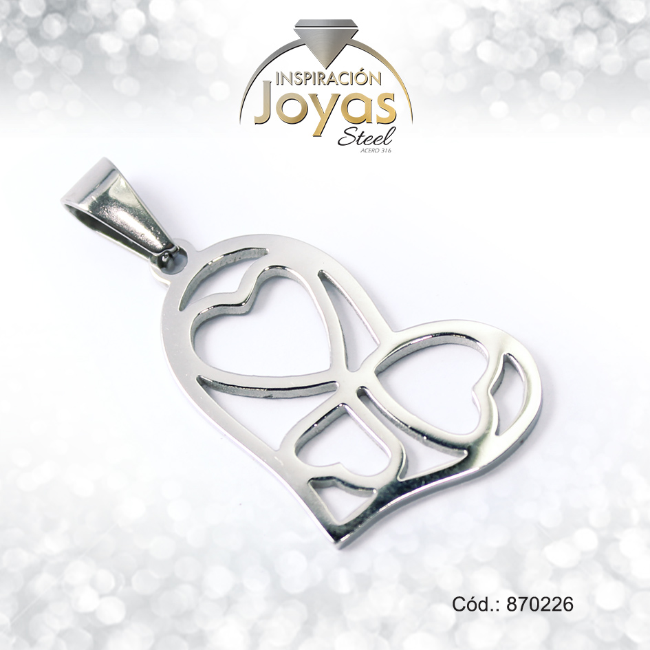 Dije de Acero Variado Plateado Corazón – 870226