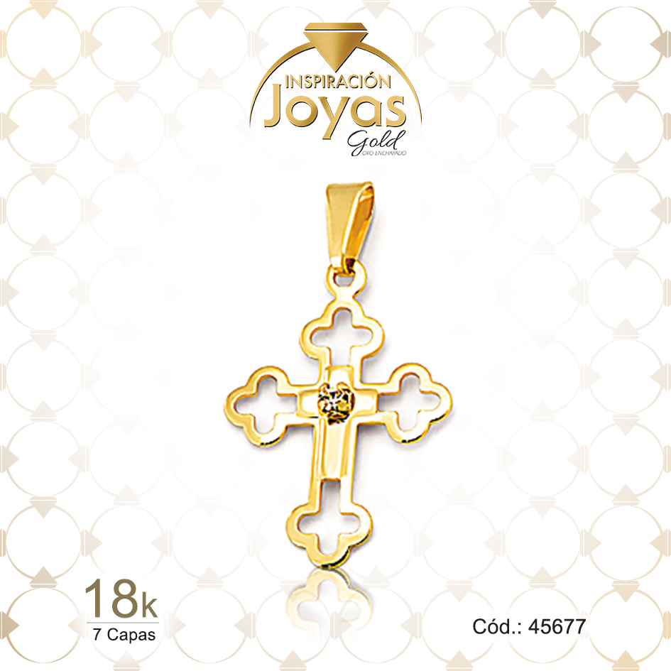 Dije de Oro Enchapado Dorado Religioso Circón Cruz Largo: 2 Ancho: 0,1 – 45677